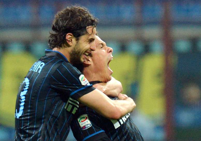 Alors que la Lazio joue en 4-4-1 depuis qu’elle est en infériorité numérique (Mauri sacrifié pour faire entrer Braafheid), Mancini profite de la blessure de Guarín pour jouer la carte Podolski et passer en 4-2-3-1. Voilà de quoi limiter les envolées d’un Felipe Anderson intenable en 1re mi-temps. Ça continue avec des actions de part et d’autre : Hernanes bloqué par Palacio, Klose lancé en profondeur qui butte sur Handanović. C’est le second tournant du match. Icardi part seul au but, écarte Marchetti, qui semble le toucher. Péno plus rouge. Klose sort pour Berisha. Maurito s’élance, parade de l’Albanais. 200% d’adrénaline dans l’air. Cela monte à 300 quand les Laziale réussissent même à obtenir un corner juste derrière. À lui tout seul, Candreva tient en respect la défense de l’Inter. Déjà dans cette configuration à Udine il y a deux semaines, les Nerazzurri avaient galéré pour l’emporter. Un Parolo héroïque sauve d’ailleurs sur Podolski en bonne position aux 6 mètres. La Lazio tient, y croit, Pioli fait même entrer Keita, sait-on jamais. Et puis Hernanes, encore lui, file seul au but après avoir été superbement servi du talon par Palacio. Pas de sentiments, frappe petit filet. 2-1. Fin du game. L’Inter s’impose, ce qui est important afin de rester en course pour l’Europe. La Lazio loupe l’occasion de repasser devant la Roma. Le derby romain de l’avant-dernière journée va vraiment sentir la poudre.