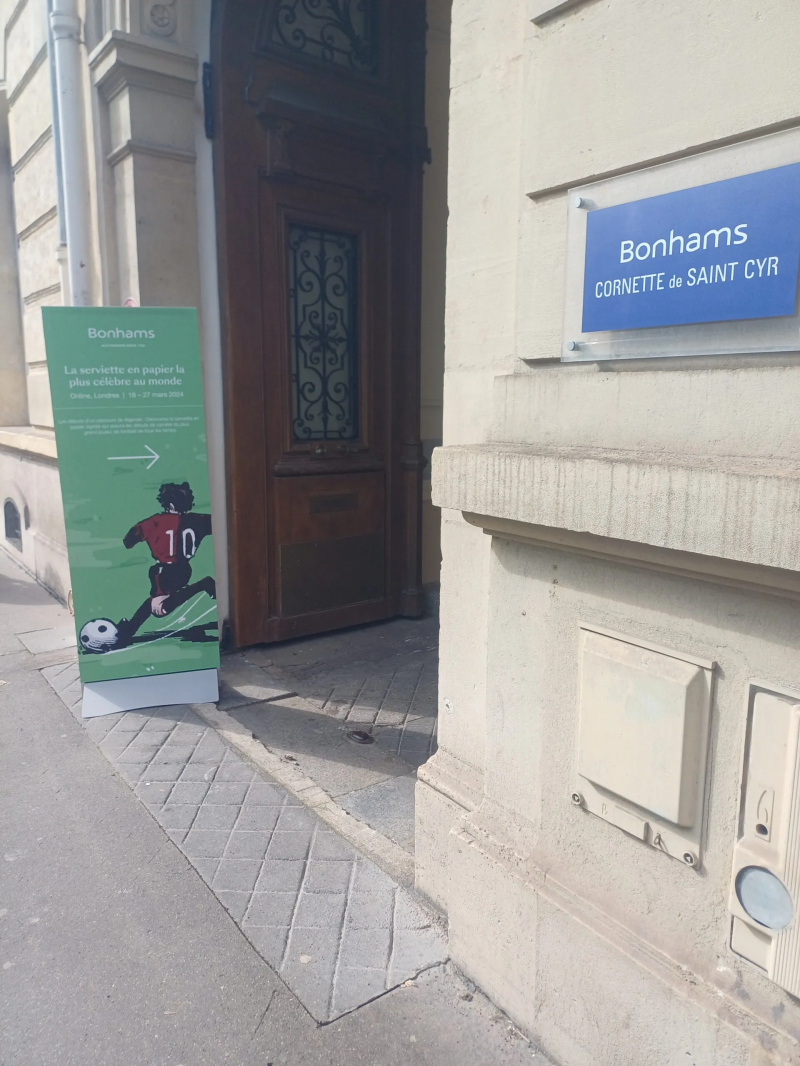 Il faut dire qu’installée dans la salle d’attente de l’agence, la serviette détonne malgré son petit écriteau explicatif et ne manque pas de surprendre les clients qui patientent. « Nous n’avons reçu que quelques visites de curieux, mais pas d’acheteurs sérieux à l’horizon », regrette d’ailleurs Céline Hersant, en charge des relations presse chez Bonhams, après trois jours d’exhibition. Au premier étage du bâtiment, l’exposition consacrée aux collections privées issues de deux châteaux français et bientôt mises en vente elles aussi remporte un plus franc succès. « Une de mes amies, qui travaille dans l’art et qui est nulle en foot, m’a demandé quelle était l’importance de ce joueur. Je lui ai répondu que c’était le Basquiat du ballon rond, la première comparaison qui m’est venue à l’esprit, et elle a tout de suite compris », tentait pour sa part Sabine Cornette de Saint-Cyr afin de tracer un parallèle avec le monde de l’art, plus habituel en ces lieux.