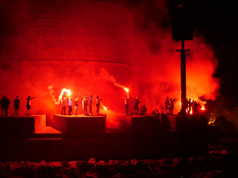 Pour marquer les esprits, les groupes de supporters de l’OM se sont alliés afin de créer un spectacle son et lumière inédit dans l’histoire du supporterisme avec pas moins de 8000 fumigènes craqués sur les vingt kilomètres que comporte le littoral marseillais. De la pointe rouge jusqu’au Fort Saint Jean, les pétards et feux d’artifice ont illuminé la nuit marseillaise. Un spectacle qui n’a, bien entendu, pas laissé de marbre les personnes venues admirer la prouesse et la coordination des supporters mobilisés. Elie, déployé sur le littoral pour assurer le bon fonctionnement de l’animation et préparé à voir un évènement de cette envergure, ne s’attendait par exemple « quand même pas à tout ça. Autant de fumigènes, de monde… Mais c’est Marseille, ici ! »