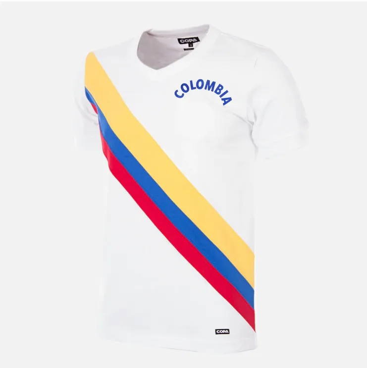 Quelques années auparavant, c’est le football colombien qui créait la surprise. En 1975, l’équipe termine à la deuxième place lors de la Copa América sous la direction d’Alfonso Novoa, menée par des talents tels que Willington Ortiz ou Iván Valencieno. Voilà pourquoi nous proposons leur superbe tunique de 1973 enrichie du livre So Foot hommage à la décennie 70’s. Sous-titré « Football total, napalm et poteaux carrés » et préfacé par Dominique Rocheteau, il vous fera revivre en 196 pages chevelues tout ce qui a rendu inoubliable cette époque bénie du football. Dont la Colombie 73.