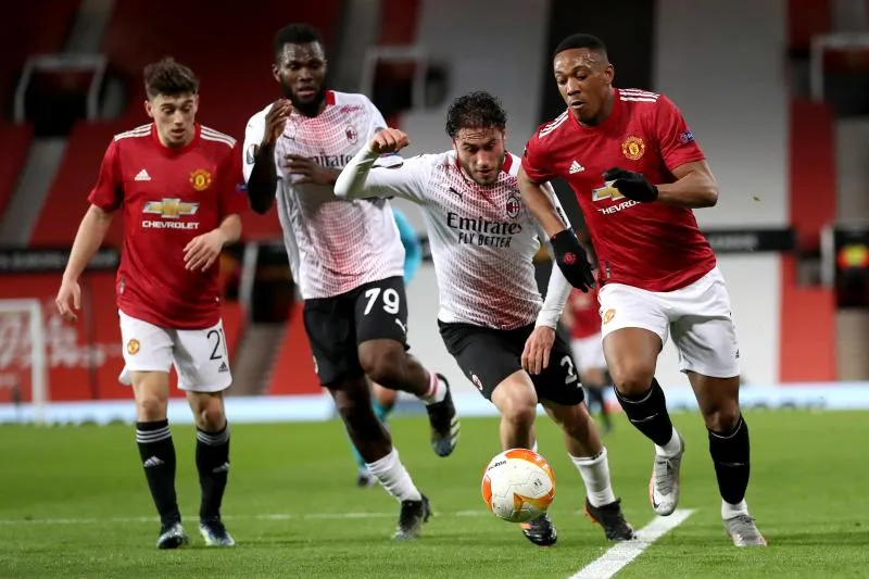 C’est une histoire de déclassement qui s’écrit ce soir. Pas capables d’exister en Ligue des champions, United et l’AC Milan se défient faute de mieux en Ligue Europa. Tout n’est pas noir, pourtant, entre deux formations qui ont notoirement retrouvé du galon cette saison. De fait, le match part sur des bases positives, notamment côté Milan, alors que le pressing haut et coordonné du Diavolo laisse entrevoir de belles ambitions. Les Lombards se pensent vite récompensés quand Kessié, laissé seul par la défense mancunienne, trompe Henderson d’une superbe demi-volée. Mais le pion de l’Ivoirien est refusé, ce dernier ayant commencé son action après avoir effectué une main peu évidente, signalée par l’arbitre après consultation de la VAR. Si les Rouge et Noir ont mieux débuté, Manchester se bouge le popotin passé le premier quart d’heure. Les Anglais cueillent même la plus grosse occasion du premier acte quand Maguire, après une tête déviée de Fernandes sur corner, trouve incroyablement le poteau à bout portant.