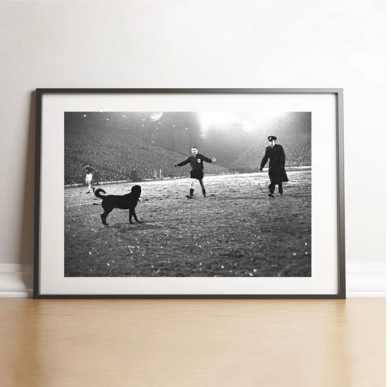Le 2 mars 1966, Leeds United se retrouve en quarts de finale de la Coupe des villes de foires, une compétition entre villes hôtes de foires internationales. Instaurée en 1955, cette coupe a pour but de promouvoir les foires internationales. On pouvait y retrouver le FC Barcelone, l’AS Roma, Birmingham City et d’autres clubs européens, Fondée deux mois après la création de la Coupe des clubs champions européens (Ligue des champions), cette compétition ne le sait pas encore, mais elle va vite faire partie de l’ancien football. Cette image nous rappelle donc les débuts du football professionnel et le temps où les chiens pouvaient encore entrer sur les terrains professionnels. Nostalgie.