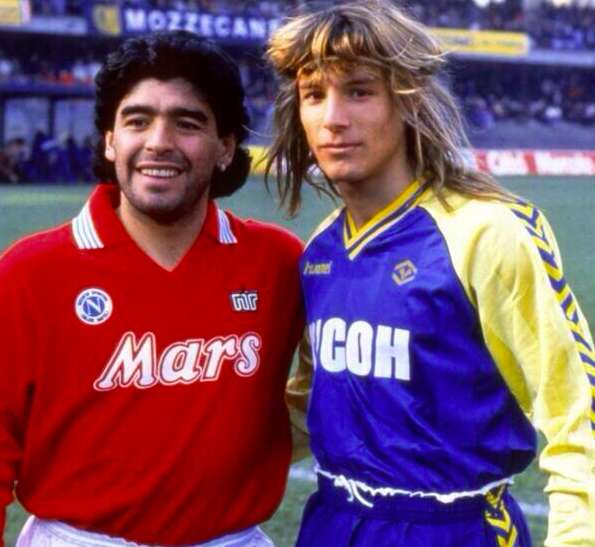 Un an plus tard, Hellas/Napoli est l’affiche de la 1re journée du championnat, celui que le Hellas remportera à la fin de la saison contre toute attente. Ce sont aussi les grands débuts de Maradona en Serie A. Une autre banderole est dégainée : « Bienvenue en Italie » . El Pibe, de suite sensible à la problématique du Mezzogiorno, sera marqué par cet épisode : « Ce slogan m’a fait comprendre que la rivalité n’était pas que sportive. C’était le Nord contre le Sud. Les racistes contre les pauvres. Je ne l’ai jamais oublié. » Et effectivement, il se venge en infligeant pratiquement à lui tout seul un cuisant 5-0 aux champions d’Italie en titre l’année suivante. Côté véronais, on n’est pas à une contradiction près. En effet, Nanu Galderisi, natif de Salerne à quelques encablures de Naples, finit meilleur buteur de cette génération historique qui remporta le Scudetto le plus inattendu de l’histoire. Bref, le décor est planté, et ce ne sera qu’une escalade les années qui suivent.