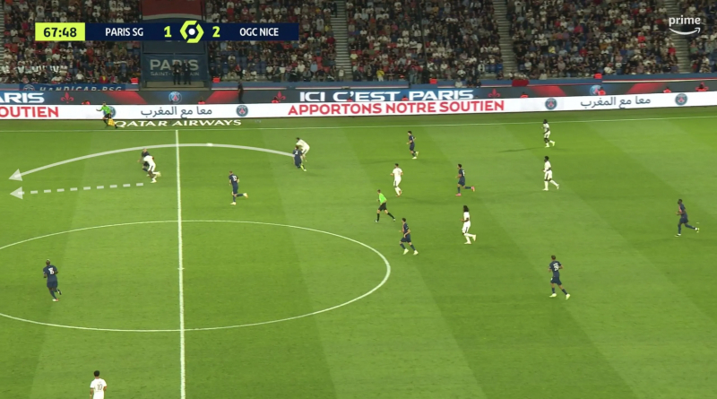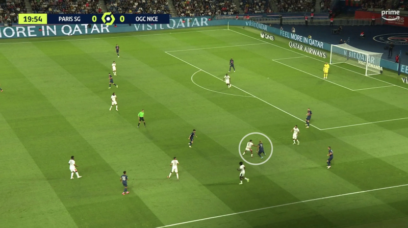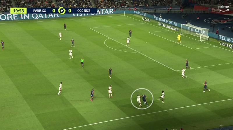 Après une bonne phase de pression haute niçoise, Todibo va suivre Mbappé jusque dans son camp…