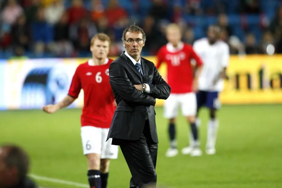 « Avec Blanc, on sort du noir ». Jeu de mot à deux balles sur la banderole des Farfadets, un des rares groupes de supporters français, que les caméras de TF1 zooment longuement. Christian Jeanpierre et Bixente Lizarazu assurent les commentaires dans la tiédeur d’un Ullevaal Stadion d’Oslo aux nombreux sièges vides. On est le 11 août, période de reprise de Ligue 1 et du traditionnel match amical des Bleus, disparu depuis. Adidas fournit encore ses trois bandes avant de passer bientôt le relais à Nike. Maillot blanc virginal, manches courtes, sans noms floqués au dos, histoire de se faire oublier. Ruffier est en kit gris souris, rase-muraille. En lunettes sévères, costard-cravate, mais sans la touillette, Laurent Blanc affiche une nervosité que ses bras croisés ne masquent pas. C’est la première après le « désastre » , 50 jours pile depuis le France-Afrique du Sud de Bloemfontein (1-2) qui avait renvoyé les mutins de Knysna au terminus des prétentieux. Raymond a giclé, Escalettes aussi. Titi Henry s’est éclipsé, Nico Anelka a été dézingué par les foudres fédérales et Toulalan hante incognito la cafète d’un magasin Casino d’une banlieue nantaise. Ribéry et Evra sont bons pour le service en ce mois d’août mais, punis eux aussi par la FFF, ils sont officiellement exclus pour encore quelques matchs.