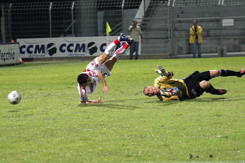 En regardant ma carrière, j’ai disputé plus de 100 matchs (101 exactement, NDLR). Mes souvenirs ? Ce n’est pas un moment isolé, mais plutôt un constat : je n’étais pas talentueux, j’étais besogneux. Je mettais une énorme énergie à l’entraînement pour exploiter au maximum mon potentiel. Mon premier match à Sochaux reste un des grands souvenirs, parce que je l’ai joué avec le cœur. En fait, tout ce que j’ai vécu, je l’ai vécu avec passion. Je n’ai jamais cherché les paillettes ni le côté médiatique. Jouer en Ligue 1, goûter à l’Europe, comme ce match à Trabzonspor où, en allant dans mon but, j’ai vu la haine dans les yeux des supporters adverses… Ce sont des matchs dont j’ai rêvé et à chaque fois je me disais : « Vas-y, croque dedans ! » Pareil avec la fête du maintien à Troyes : on ne se rend pas toujours compte de ce que c’est de jouer le maintien dans certains clubs, mais parfois, un maintien procure plus d’émotions qu’une montée. On se sauve à l’avant-dernière journée contre Laval, dans un match mal embarqué. À la fin de la soirée, je me retrouve dans une fontaine à danser avec le président Masoni. Ce sont des émotions, tout simplement. J’ai joué au foot pour ça.