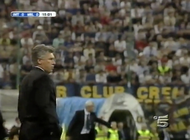 Longtemps, le serpent à lunettes argentin a pourtant cru voir se dessiner le coup parfait. Il est d’ailleurs difficile d’affirmer que le technicien a foiré un croquis qui avait laissé Francesco Toldo relativement au chaud lors du match aller et qui a de nouveau plutôt fonctionné. Durant quarante-cinq premières minutes intenses, le gardien italien n’a ainsi eu qu’une tentative trop croisée de Shevchenko à accompagner du regard et un sacrifice à faire devant Inzaghi. Au cours de la deuxième période, rebelote : entre les braises et les coups de sifflet de Gilles Veissière, le portier de l’Inter n’a eu qu’une seule frappe trop enroulée de Shevchenko à contrôler. Devant lui, comme à l’aller, Córdoba et Cannavaro, très bien soutenus par Materazzi, ont parfaitement géré Shevchenko et Inzaghi et sont à plusieurs reprises sortis pour rattraper des ballons perdus par leurs milieux devant un duo Gattuso-Pirlo vorace. Mieux, la machine nerrazurra, de nouveau déployée en 3-5-2, a plutôt su éteindre un Rui Costa qui a évolué un cran plus haut avec le retour aux affaires d’un Andrea Pirlo vital dans toutes les phases.