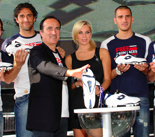 La firme italienne Lotto a présenté lundi sa nouvelle chaussure sans lacets, à Milan. Quelques joueurs avaient fait le déplacement pour l'occasion...
