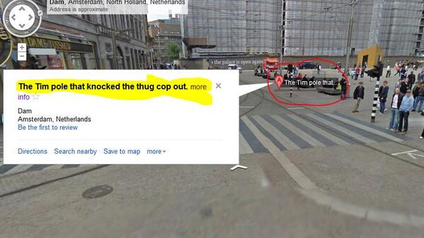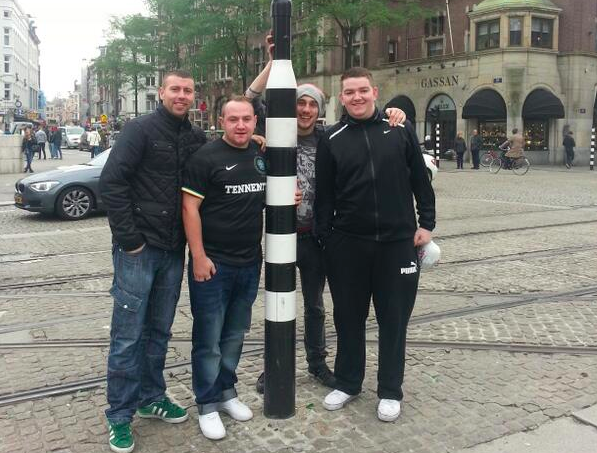 Lors des échauffourées entre les forces de l’ordre et les fans du Celtic, un policier en civil tenta d’échapper aux supporters après une charge en entrant dans un tramway en marche. Un poteau de signalisation l’en empêcha et un vidéaste a filmé le tout. Près de deux ans plus tard, et alors que l’Ajax et le Celtic s’affrontent à nouveau pour l’ouverture de la Ligue Europa version 2015-2016, la municipalité d’Amsterdam a tout fait pour séparer les supporters ajacides et glaswégiens, installant des barrières entre eux sur la place du Dam. En revanche, les Hoops s’en sont donné à cœur joie pour célébrer leur nouveau lieu de pèlerinage amstellodamois.