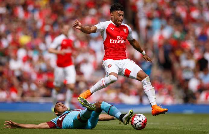 Slaven Bilić n’avait donc pas menti. Il a bien recruté Dimitri Payet pour le faire jouer dans un poste de numéro 10, là où il s’est révélé à l’OM. Pour la première journée à l’Emirates, le Croate fait des choix forts, avec un 4-4-2 losange, un jeune de 16 ans en milieu défensif, et Amalfitano envoyé au dernier moment en tribunes. Wenger lui aussi fait des choix par rapport à l’équipe aligné lors de sa préparation. Debuchy reprend la place de Bellerin et Giroud revient en pointe à la place de Walcott. Le message est clair : quitte à dominer outrageusement, autant installer un grand dans le camp d’en face. Dans les dix premières minutes, Noble et Ogbonna prennent un jaune. De quoi se dire que la plus petite équipe londonienne va prendre le bouillon, surtout qu’Oxlade-Chamberlain affole tout le monde quand il accélère. Mais les Gunners ronronnnent. Aucune occasion franche. Juste une reprise dans la surface de Giroud contrée in extremis par l’ancien défenseur de la Juve. Pour souffler, les Hammers peuvent compter sur Payet. L’international français fait vivre le ballon et fait parler sa technique de velours. Il ne s’arrête pas là. Juste avant la mi-temps, il botte un coup franc parfaitement dans la surface pour la tête de Kouyaté, bien aidé par une sortie totalement foirée de Čech.