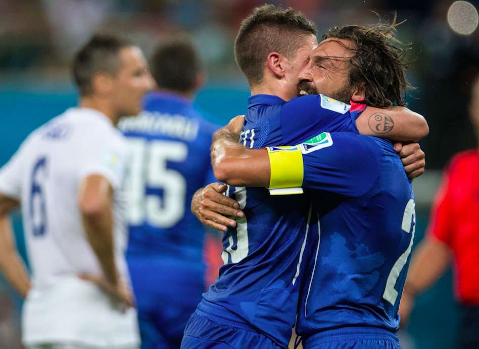 Deux ans plus tard, au Mondial brésilien, Prandelli tâtonne entre différents styles de jeu et finit par ne pas choisir. Verratti est parfois titulaire, mais toujours remplacé. Pirlo reste indéboulonnable malgré un déclin de forme évident. Entre les deux, Motta est sur le banc, De Rossi joue sans convaincre, et Marchisio s’efforce de donner tout ce que les autres n’ont pas entre les lignes, au prix d’un carton rouge fatal contre l’Uruguay. Devant, Balotelli est placé en sauveur sans soutien, ni tactique ni moral. Antonio Cassano n’est plus là pour transformer des cailloux en bijoux. Et au pays du dribble, la Nazionale tombe dans le piège de la possession stérile. L’Italie gère le ballon (58% contre le Costa Rica, 55% en infériorité numérique contre l’Uruguay), mais concentre son contrôle du jeu sur la relation Bonucci-Pirlo. Le lien avec les mouvements des latéraux et la création des offensifs, autrefois pris en charge par la vision de Pirlo et les talents de Cassano, disparaît petit à petit. Et l’Italie chute.