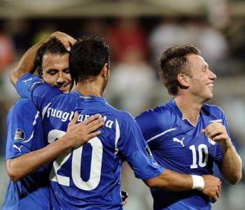 De l’ancien entraîneur de la Fiorentina sont attendus spectacle, combinaisons et humanisme. Aussi, pour son premier match officiel, Cesare a simultanément aligné Montolivo et Pirlo, association jamais tentée par Lippi. La première mi-temps, très correcte au niveau du jeu, a vu l’Italie buter dans la finition et, pire, encaisser un pion estonien. La seconde mi-temps fut médiocre, mais sauvée par deux buts, sur des corners de Pirlo et des jolies courbettes de Cassano. Ensuite, mardi, l’Italie a battu les Iles Féroé, cinq à zéro. Prandelli utilisa à nouveau un schéma en 433 non sans en avoir changé la composition par rapport au match précédent.
