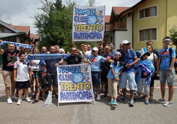 Les travées du stade Carciato sont bien remplies. Au dernier rang, journalistes de sites internet ou télévisions locales suivent le Napoli au jour le jour et s’activent pour combler le programme quotidien. Un peu plus bas, les supporters azzurri sont venus assister à l’entraînement de leurs protégés. Federico fait partie de ces nombreux immigrés qui profitent de l’occasion : « J’habite du côté de Rovigo, pour moi et d’autres, c’est une belle opportunité de voir notre équipe de cœur. Certains viennent aussi d’Allemagne de Suisse. » Tous en profitent pour allier l’utile à l’agréable, vacances à la montagne tout en suivant leur passion. « On a nos habitudes, on a fait des rencontres au cours des années et on se retrouve chaque été » , révèle Arturo qui a convaincu femme, sœurs et beaux-frères de le suivre.
