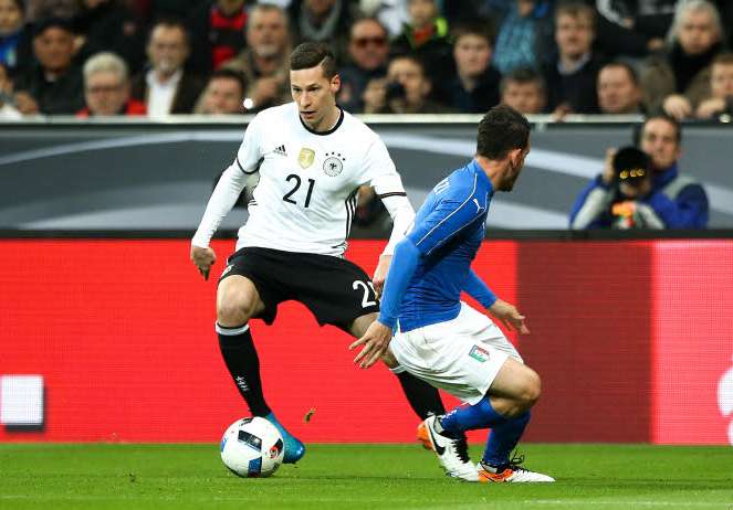 Le match n’est pas encore commencé, et déjà une belle surprise : Joachim Löw tente un petit coup en laissant Julian Draxler sur le banc (malgré son quart de finale dantesque), et aligne ce qui ressemble à une défense à 5. Côté transalpin, De Rossi, légèrement touché contre l’Espagne, est également sur le banc.
