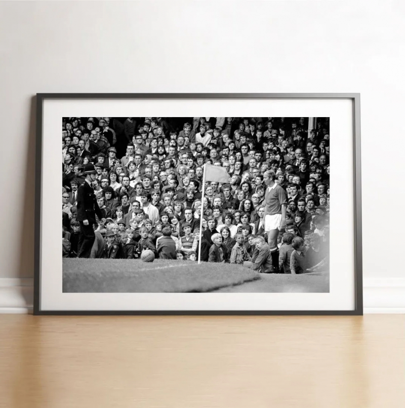 Sir Bobby Charlton a laissé une marque indélébile à Manchester United. Son parcours, depuis sa survie lors de la catastrophe aérienne de Munich jusqu’à devenir l’un des plus grands joueurs de l’histoire du football, est à la fois inspirant et profondément émouvant. Il jouait comme si chaque match était pour ses amis disparus. Sa dévotion envers Manchester United, sur et en dehors du terrain, était remarquable. Il a ainsi passé 17 ans à honorer ce maillot rouge. L’impact de Charlton sur le jeu s’est étendu au-delà de sa carrière de joueur. Ses distinctions, notamment le changement de nom de la Tribune Sud d’Old Trafford en son honneur, témoignent du respect et de l’admiration immenses qu’il a suscités tout au long de sa vie. Cela méritait bien un superbe cliché noir et blanc lors d’un match face à West Ham en 1971.