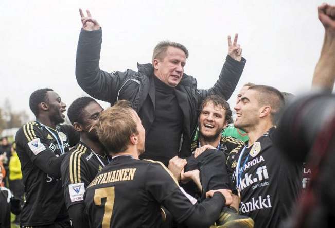 Un an auparavant, avec une technique que l’URSS de Staline n’aurait pas reniée, l’homme d’affaires intègre le conseil d’administration de… l’HJK Helsinki. « Je voulais voir comment fonctionnait le club le plus puissant de Finlande, pour faire progresser le SJK » , nous déclare-t-il. Cette expérience dans le club de la capitale ne durera pas longtemps, les Kehro remportant le titre d’Ykkonen, la deuxième division, en 2013. Le cap est alors mis sur l’élite. Pour un aller-retour dans l’ascenseur ? Certainement pas, avec la détermination et le travail de Sarajärvi, les hommes de Simon Valakari, ancien international finlandais, décrochent la deuxième place et remportent surtout la Coupe de la Ligue et donc un billet en Ligue Europa. Pour une première sur la scène européenne, pas de miracles, mais de l’expérience engrangée. Avec un titre majeur tous les deux ans, c’est évidemment le moment de se mettre à rêver.