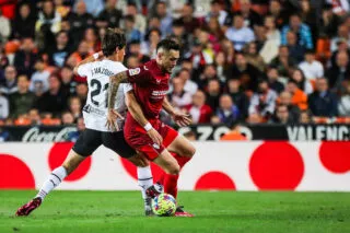Sans doute frustrés par le scénario du match aller, les Red Devils veulent prendre les choses en main rapidement et s’installent dans le camp adverse. Une bonne idée, sans doute, qui va vite tomber à l’eau lorsque Séville reçoit un cadeau venu du ciel : sur une relance moyenne de De Gea, Maguire se prend les pieds dans le tapis et rend le cuir à Lamela, qui met En-Nesyri dans les meilleures conditions. Face à la cage, le Marocain fait le geste juste pour mettre les siens devant (1-0, 9e). Sánchez-Pizjuán, tout de blanc vêtu pour l’occasion, bascule alors dans la folie. Les hommes de Mendilibar sont survoltés par cette ouverture du score et s’arrachent sur chaque duel pendant que ceux de Ten Hag balbutient leur football. Les Mancuniens laissent beaucoup d’espaces dans leur défense, ce qui permet aux Andalous de passer à plusieurs reprises près du break. Ils croient d’ailleurs y parvenir lorsqu’Ocampos ouvre parfaitement son pied pour tromper De Gea du droit (41e), mais l’arbitre finit par signaler un hors-jeu après avoir été appelé par la VAR. Dans l’euphorie, Rakitić catapulte une volée surpuissante, mais Casemiro s’interpose de justesse sur la trajectoire (45e). À la pause, c’est donc un petit miracle de voir Manchester n’être mené que d’un but.