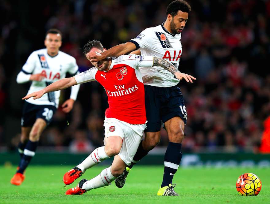 À l’heure du coup d’envoi de ce 177e derby du Nord de Londres, Gunners et Spurs sont en pleine bourre. Les premiers restent sur cinq victoires en championnat, tandis que les seconds n’ont pas perdu un seul de leurs dix derniers matchs en Premier League. Dès les premières minutes, les ambitions offensives affichées par les deux équipes se dévoilent clairement. La balle passe d’un camp à l’autre à toute allure et les 22 acteurs jouent comme des morts de faim. Peu à peu, les Gunners parviennent à s’installer dans la moitié de terrain adverse et commencent à jouer de manière plus réfléchie. Muselés par une défense de Tottenham bien en place, Giroud, Campbell et Sánchez ne parviennent pas à se montrer dangereux, malgré une grosse activité. Sur leurs quelques opportunités en contre, les hommes de Mauricio Pochettino ne sont pas vraiment inquiétants non plus.