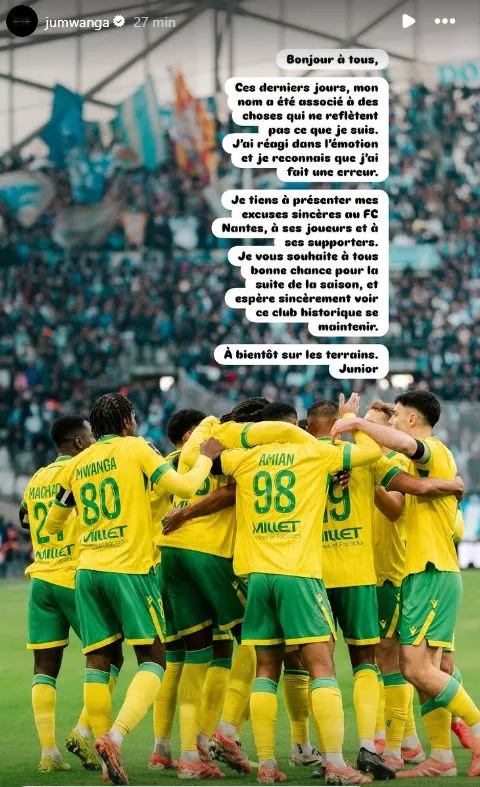 17h28 : Les excuses du jour sont à mettre au crédit de Junior Mwanga, qui, selon Ouest-France, a annoncé son départ du FC Nantes alors que son club n’était pas au courant. Résultat : un retour de prêt plus tôt que prévu, et des excuses bien senties : « ces derniers jours, mon nom a été associé à des choses qui ne reflètent pas ce que je suis. »