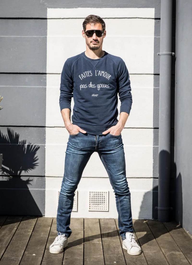 « Les gens sont parfois surpris que je parle ! Un peu comme pour les supporters, on se fait une mauvaise image d’un groupe de gens à partir d’une minorité : parce qu’on est footeux et qu’on gagne du blé, on snoberait les gens, on roulerait en grosses voitures noires ? On peut tout à fait être normal, aussi ! D’ailleurs, ma femme a toujours travaillé, et on lui reproche parfois, sous prétexte que c’est une « femme de ». Mais c’est nul, « femme de » ! » Et le Porsche Cayenne noir garé devant la maison ? « Les vitres ne sont pas teintées et d’ailleurs, je suis un peu déçu, je ne prendrai pas ça la prochaine fois. Mais j’ai des obligations familiales… » Notamment un fils qui laisse traîner des ballons un peu partout sur la pelouse qui entoure la maison familiale : « J’aimerais qu’il devienne meilleur que moi. Cette génération, ils bouffent du foot tout le temps et puis il a un accès privilégié en tant que « fils de », comme un fils d’acteur ou de réalisateur. En revanche, il préfère jouer à Caen qu’au Barça. »
