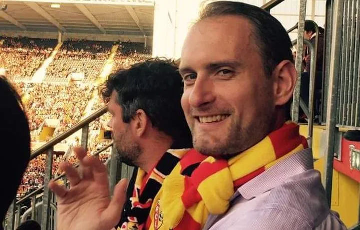 Quand je rentrais en Angleterre et que j’allais à l’école avec mon maillot de Lens, mes camarades se demandaient ce que c’était comme club. J’avais 16 ans, j’essayais d’aller à Bollaert quand je pouvais, mais c’était compliqué. Les matchs n’étaient pas diffusés chez nous, j’écoutais à la radio sur les grandes ondes. Le soir du titre à Auxerre, la radio captait très difficilement, mais c’était très émouvant. Ensuite, quand j’ai grandi et que j’avais plus d’argent, je faisais en sorte de caler des voyages pour voir la famille et en même temps un match. Depuis 10 ans, je viens voir 3-4 matchs à Bollaert chaque saison. Adolescent, je cherchais un peu ce qui me représente, les valeurs auxquelles j’étais attaché, et Lens était devenu une évidence. Ce que tu vis dans ce stade, tu ne le vis pas en Angleterre. Les gens sont vraiment chaleureux, solidaires. Même si je ne viens pas régulièrement au stade, il y a toujours quelqu’un qui m’aide pour avoir une place dans le kop, quelqu’un qui ne me connaît pas qui va me payer une bière juste parce que je suis un Anglais sympa qui vient voir Lens. Lorsque je vais voir un match en Angleterre, je ne vibre pas. Quand tu vas à l’Emirates pour voir Arsenal, tu t’ennuies. Sur un soir de Ligue des champions contre le Bayern, j’ai vu cinq minutes d’ambiance, ensuite tout le monde était endormi. Un quart d’heure avant la fin du match, ça partait déjà. À Lens, même contre Niort en Ligue 2, tu restes jusqu’au bout.