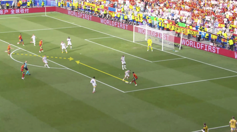 … et un espace géant qui s’ouvre : au bout, Yamal aura une belle situation dans la surface.