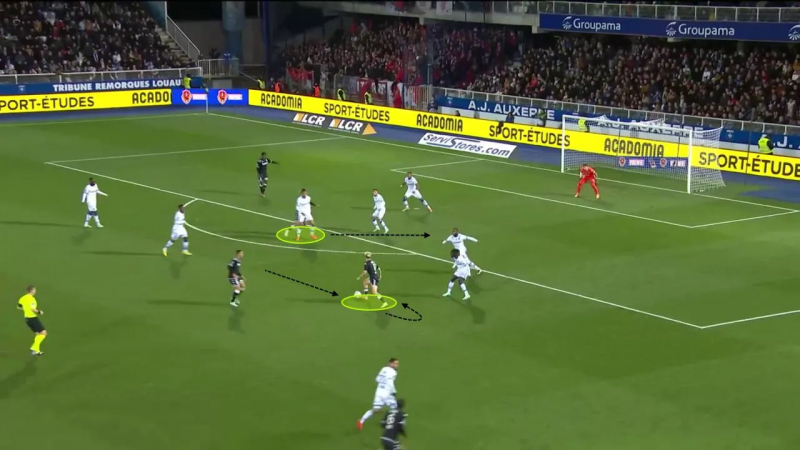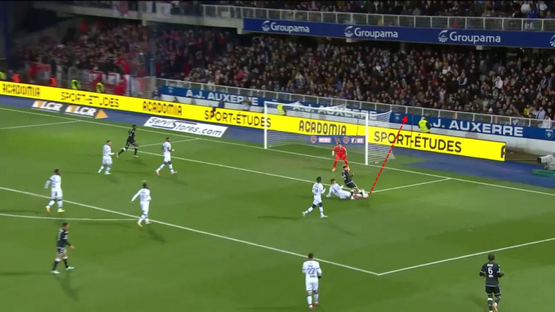 Il attaque alors encore une fois l’espace opportun, dans le sens contraire des déplacements auxerrois et dans l’espace laissé ouvert par ces derniers…