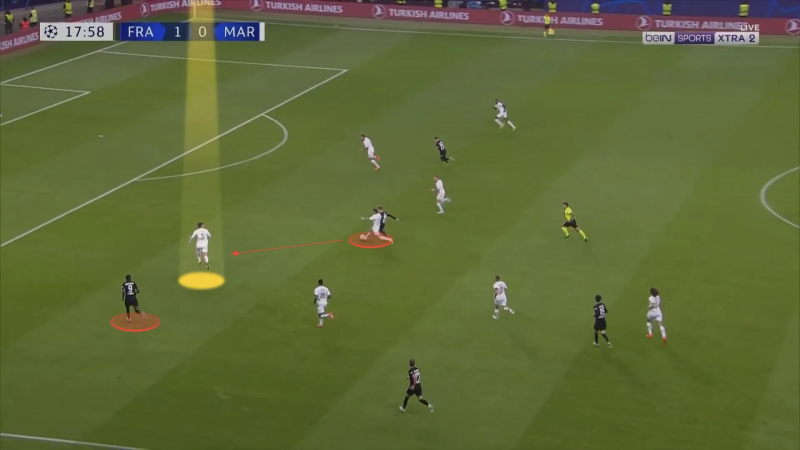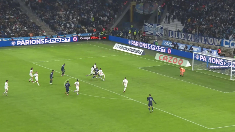 Il intercepte ensuite le ballon grâce à son bon placement, mais le défenseur marseillais est dilettante. Après plusieurs touches de balle sans trop s’inquiéter du pressing subi, il offre une passe trop molle à Pau Lopez qui devra s’interposer pour ne pas encaisser le tir allemand suivant l’interception.