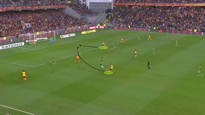 Un parti pris récompensé sur l’ouverture du score lensoise à la suite de la position très haute du défenseur argentin au moment de décaler Deiver Machado.