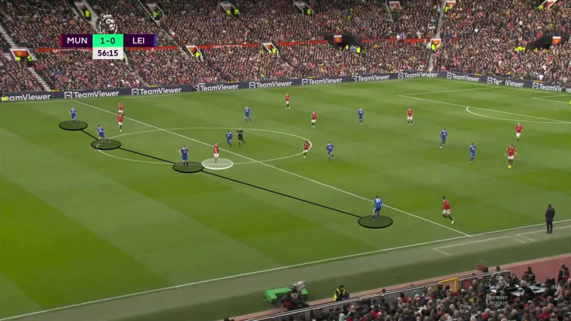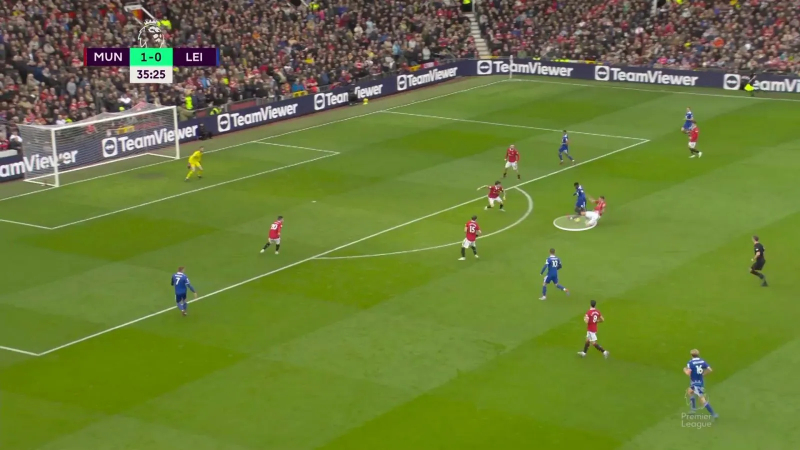 Rigoureux sans ballon, et plus en réussite contre Leicester (cinq ballons récupérés, deux tacles réussis) qu’au Camp Nou, où il a également eu bizarrement du mal à exister dans les airs, Wout Weghorst a surtout de nouveau été brillant dans son rôle de passe-partout. Comme à Leeds, le Batave, dont la position axiale permet à un Bruno Fernandes toujours hyperactif de sortir son arc dans des zones moins denses et à son équipe d’être plus impactante dans la course aux seconds ballons, a ainsi défoncé des portes pour faire briller ses partenaires. Face aux Foxes, il a même été impliqué dans tous les buts de la rencontre.