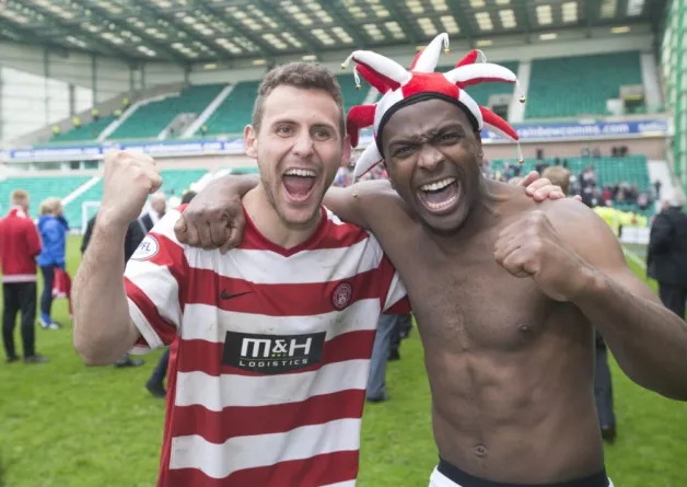 Ouais, c’est sûr. Moi, j’angoissais de jouer les play-offs. D’abord parce que je voulais finir plus tôt. Puis parce que c’est assez éprouvant physiquement et psychologiquement. En fait, en D2 écossaise, t’as le premier qui monte automatiquement. Le deuxième doit affronter le vainqueur du quatrième contre le troisième. Et celui qui gagne ce match doit affronter l’avant-dernier de D1. Je peux te dire que le dernier match, tu le joues émoussé et avec des crampes. Donc nous, on joue Falkirk FC (l’ancien club de Sir Alex Ferguson, ndlr). Une équipe dure à jouer, avec un stade bien hostile. Un vrai traquenard. On fait 1-1 chez eux et je marque le seul but du match au retour, chez nous. Un grand délire. Du coup, nous voilà, nous, petit club de D2, habilités à jouer la finale de playoffs contre Hiberninan ! Honneur au relégable, on commence chez nous. On prend une veste 2-0… Mais pendant le match on joue bien, seul petit espoir pour le retour. À Hibernian, devant 20 000 supporters, dont 3000 de chez nous qui ont chanté tout le match, on inverse la tendance dans un match fou. On mène 1-0 jusqu’à la 93e sous des trombes d’eau. Dernière action : l’arbitre a le sifflet sur le bord des lèvres et moi, je plante le but du 2-0 à la toute dernière seconde. Un truc de fou.