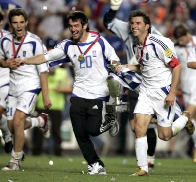 Avant l’Euro. La Grèce, c’est deux participations à des phases finales : Euro 80 et Coupe du Monde 94. 6 matchs, 5 défaites, 1 nul, 1 but marqué, 14 encaissés. Autant dire qu’à part la Lettonie, personne n’est plus outsider qu’eux. Otto Rehhagel va donc mettre en place une équipe on ne peut plus défensive, qui ne marque presque que de la tête sur coup de pied arrêté. Lorsqu’en demi-finale, Nedved se blesse au genou, ce sont tous les supporters de football qui se mettent à pleurer. Parce que l’histoire du petit poucet, ça ne plait qu’en Coupe de France.