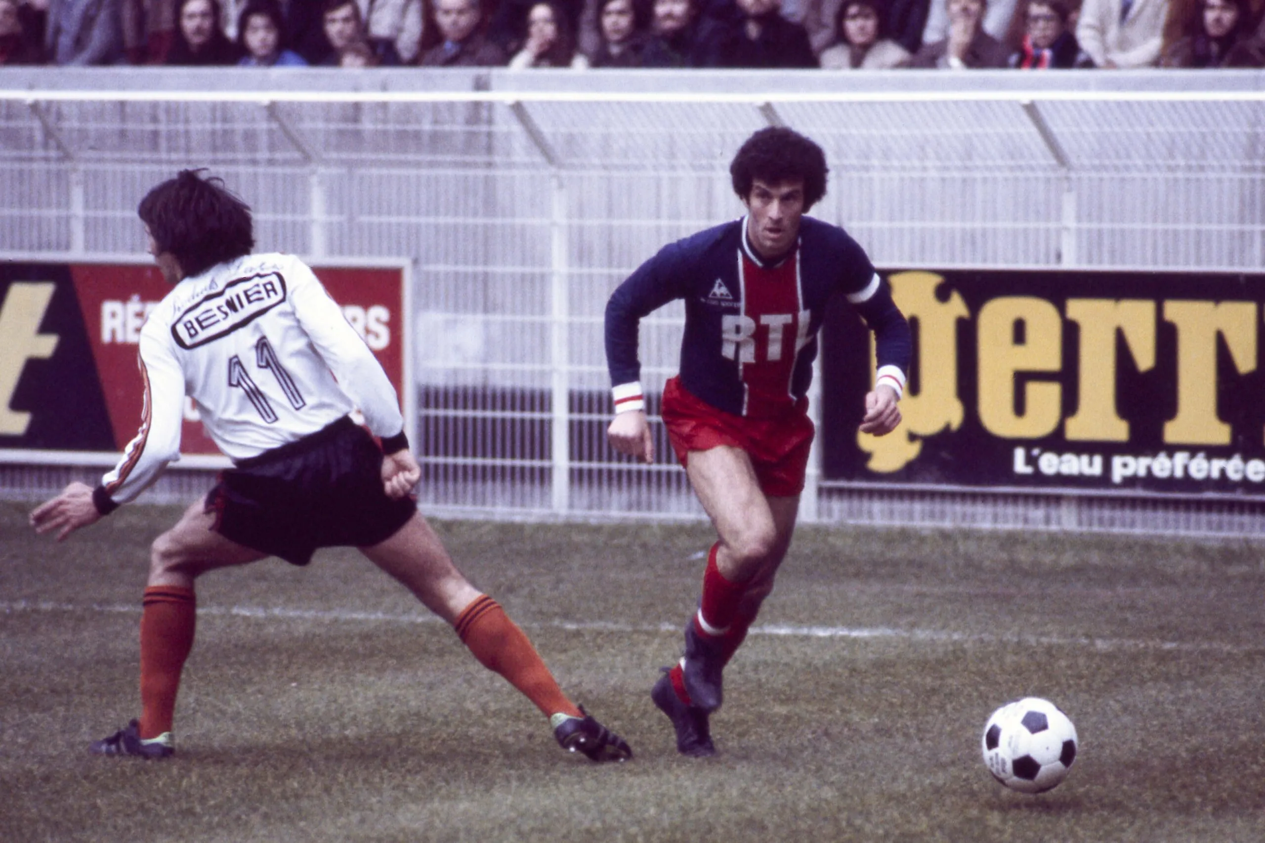 Après Mekhloufi et Zitouni et avant Madjer, Belloumi, Saïfi, Ziani, Meghni et Mahrez, l’Algérie a eu son dribbleur tampon. Celui qui a fait le lien entre vieux et nouveau football. Milieu (très) offensif, le Kabyle a ainsi été la première grande star d’un jeune PSG au mitan des années 1970-1980. Capable de changer de pied en pleine conduite de balle, Dahleb a ainsi fait évoluer le rôle de meneur en France, par ses chevauchées amenant souvent le cuir d’une surface à l’autre (98 buts inscrits sous le maillot parisien, un nombre impressionnant pour un attaquant de soutien). Un dribbleur simple, qui embarquait avec lui trois ou quatre adversaires dans le rond central, accompagné par les « Mousse, Mousse » descendant des tribunes du Parc des Princes. Sa fresque est d’ailleurs fraîchement présente aux abords du stade.