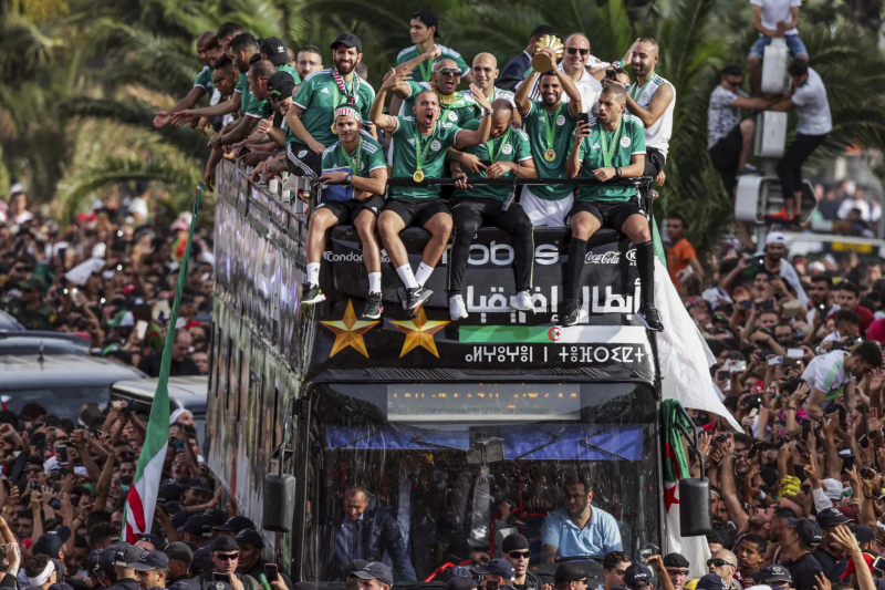 L’Algérie 2014, c’est le réveil. Sous Vahid Halilhodžić, la sélection retrouve une ossature, un cadre strict, parfois chiant, mais nécessaire. Surtout, elle voit naître ses futurs patrons : Riyad Mahrez sort de Leicester version chantier, Sofiane Feghouli s’impose comme le mec fiable quand ça chauffe. Et puis il y a ce match contre l’Allemagne au Brésil. Un huitième de finale devenu mythe, presque un remake de 1982. David contre Goliath, encore. Une Algérie sans complexe, qui pousse les futurs champions du monde en prolongation, avant de se faire achever par un Manuel Neuer sous acide, gardien-libéro avant que ce ne soit tendance, chassant Islam Slimani jusqu’au rond central. La suite est plus floue. CAN 2015 frustrante, CAN 2017 ratée, et cette impression persistante d’une équipe qui joue bien mais qui se saborde toute seule. Jusqu’à ce que la FAF ait une illumination rare : confier les clés à Djamel Belmadi. Rigueur, sorties de balle propres, pressing intelligent, et surtout une capacité nouvelle à faire tomber tous les gros : Sénégal, Côte d’Ivoire, Nigeria. Le tableau de chasse est sérieux et mène au sacre en 2019, 29 ans après le premier. Au pays, Belmadi gagne un surnom à la hauteur : « Ministre du bonheur ». Il laisse derrière lui une série d’invincibilité de 35 matchs avant une déflagration face au Cameroun et deux CAN fantomatiques, ce qui rappelle une règle algérienne immuable : même les gouvernements finissent toujours par tomber. MH