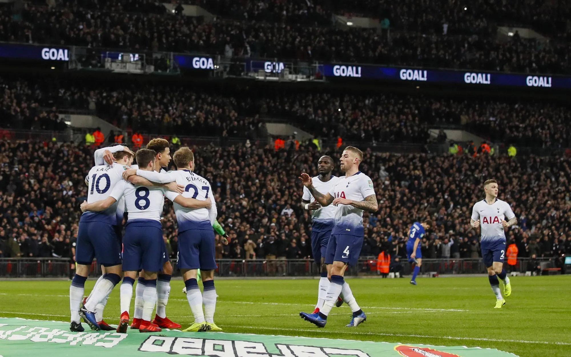 Tottenham (4-3-3) : Gazzaniga – Trippier, Alderweireld, Sánchez, Rose – Winks (Skipp, 88e), Sissoko, Eriksen – Alli, Son (Lamela, 79e), Kane. Entraîneur : Pochettino.