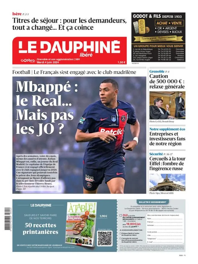 Le Parisien n’oublie pas celui qui a rempli ses pages pendant sept ans, mais se contente d’une entrée timide sur « les dessous de son arrivée au Real Madrid » en Une. La même place accordée qu’aux poteaux de Koh-Lanta – un épisode qui a le mérite de s’annoncer beaucoup plus indécis que celui du transfert du Kyks. Pas de raz de marée non plus dans le reste de la presse quotidienne régionale de l’Hexagone, où Le Dauphiné libéré fait figure d’exception en mettant le joueur en Une. Avec une préoccupation : les conséquences de son transfert sur une participation aux Jeux olympiques de Paris.
