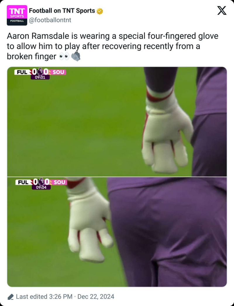 Aaron Ramsdale a fait parler de lui lors du match nul soporifique entre Southampton et Fulham (0-0). La raison ? Un gant de gardien spécialement conçu avec seulement quatre doigts pour lui faire un énorme doigt.