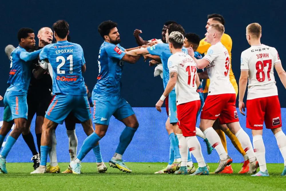 Alors que la rencontre de Coupe de Russie entre le Zénith Saint-Pétersbourg et le Spartak Moscou (0-0, 4-2 aux tirs au but) a été le théâtre d’une bagarre générale (quatorze cartons distribués, dont six rouges), la Premier-Liga a décidé de punir les six joueurs exclus avec une suspension de six matchs. Cette sanction ne s’appliquera qu’en coupe pour Malcom, Barrios et Rodrigao (côté Zénith) ainsi que Sobolev, Nicholson et Selikhov dans le clan moscovite.
