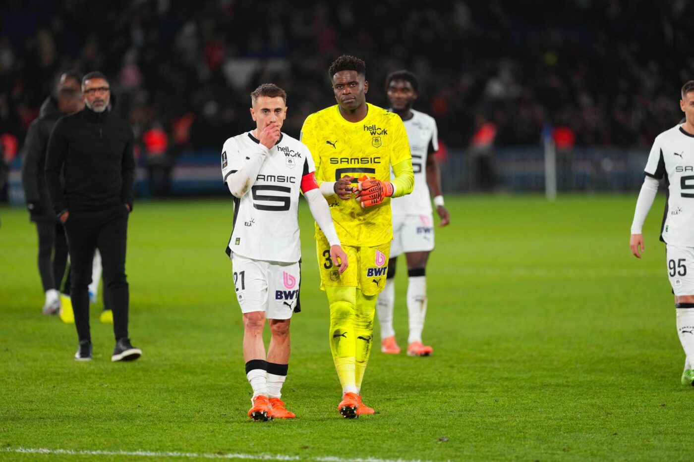 Après la rencontre, Valentin Rongier est le seul joueur rennais à s’être arrêté en zone mixte, où la question sur le cas Samba lui a été posée. « Ça ne nous regarde pas, a-t-il balayé. On a un job, c’est jouer sur le terrain, être performant, faire ce que le coach nous demande et rester ensemble (…) Le coach a pris cette décision, c’est lui notre boss. On n’a pas à remettre en cause ça. J’insiste bien sur le fait qu’on est ensemble, personne ne se divise dans le vestiaire et on va le montrer d’ici à la fin de saison. »