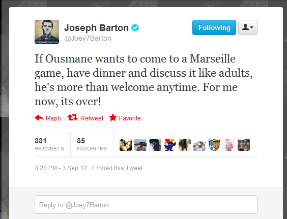 Preuve de sa belle intégration en France, Joey Barton lit déjà L’Équipe. Surtout quand Ousmane Dabo revient dedans pour la énième fois sur l’incident qui a opposé les deux milieux de terrain en mai 2007 sur le terrain d’entraînement de Manchester City. Quand Joey avait salement aligné Ousmane.