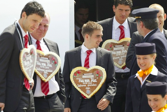 Mais les supporters en culotte de peau ne sont pas rancuniers et ont tenu à féliciter les joueurs pour le bon parcours en Ligue des champions et le doublé coupe d’Allemagne-Bundesliga en leur offrant une médaille gourmande. Plus précisément un gâteau en pain d’épice géant en forme de cœur.