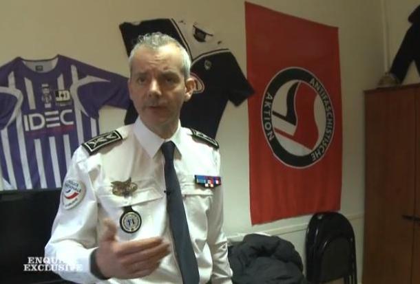 Le commissaire Antoine Boutonnet (que So Foot avait interviewé en février dernier) dirige actuellement la division nationale de lutte contre le hooliganisme (DNLH) au sein du ministère de l’Intérieur. Dans un reportage diffusé sur M6, on a pu apercevoir Antoine Boutonnet dans son bureau, un drapeau de l’action antifasciste accroché au mur.
