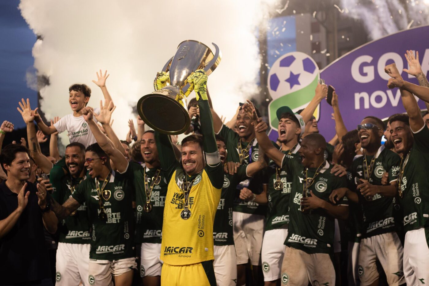 Tombé de plusieurs mètres de haut, le trophée a été abîmé, rapporte Globo. Plus de peur que de mal néanmoins : les réparations nécessaires ont été effectuées et la coupe était bien en un seul morceau au moment d’être soulevée par les joueurs du Goiás Esporte Club, sacrés face à l’Atlético Clube Goianiense grâce à leur victoire 2-0 à l’aller et leur nul 0-0 dimanche.