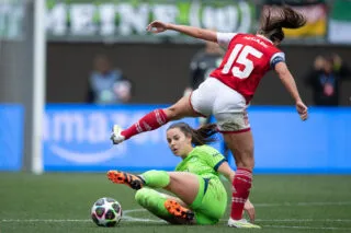 Blackstenius refait des siennes au retour des vestiaires, mais la VAR sauve cette fois Wolfsburg et rattrape Maritz, qui avait servi la Suédoise, partie un poil trop tôt (47e). Dans la foulée, Wolfsburg se rebiffe, et McCabe doit dégager une tentative de Jónsdóttir sur sa ligne (56e). La capitaine londonienne ne peut en revanche qu’admirer l’inusable Popp, tout juste revenue de blessure, placer son coup de casque sur corner pour mettre les Allemandes devant (1-2, 57e). Obligées de se découvrir, les Gunners s’exposent, et Huth manque de plier l’affaire en croisant trop (68e). Un raté dont profitent les Anglaises quelques minutes plus tard. Sur coup franc, Wubben-Moy remise dans le paquet et trouve Beattie qui place sa tête pour faire exploser l’Emirates (2-2, 74e). Les deux équipes laissent la construction de côté pour tenter d’arracher la décision, mais n’évitent pas la prolongation. Après une occase de part et d’autre pour Hurtig (98e) et Bremer (112e), l’Allemande profite d’un caviar de Brand, et d’une boulette de Wubben-Moy, pour pousser le cuir au fond (2-3, 119e). Die Wölfinnen s’offrent une sixième finale et tenteront d’aller décrocher une troisième timbale face au FC Barcelone le 3 juin prochain.