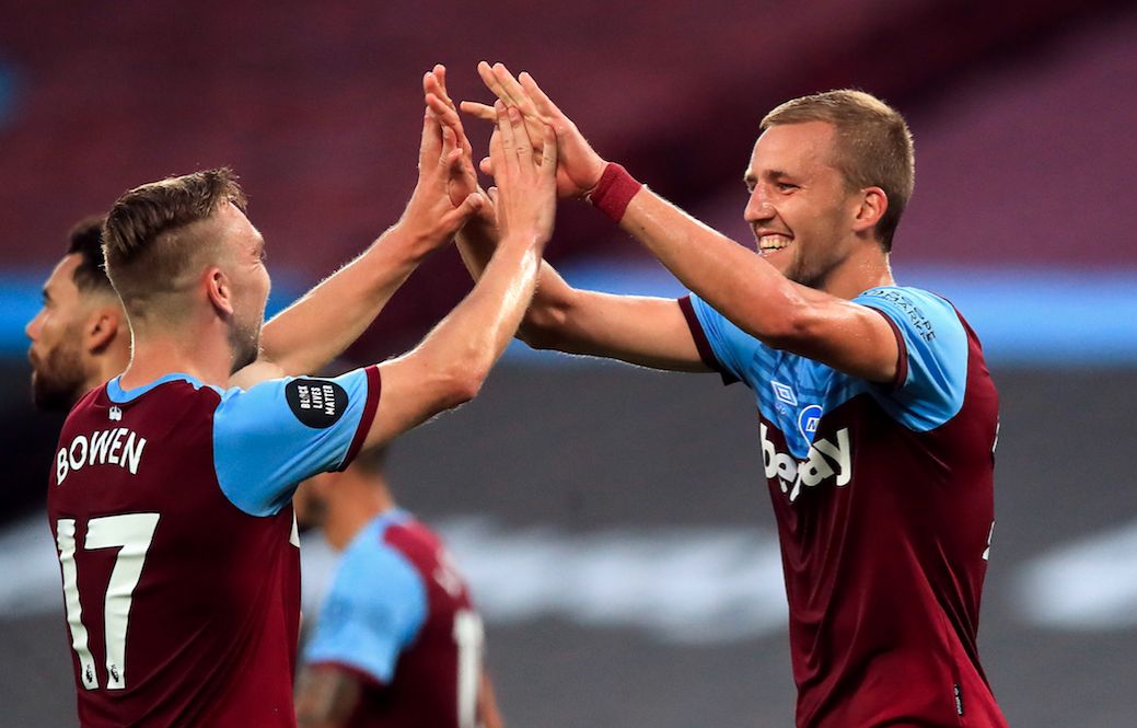 West Ham (4-2-3-1) : Fabiański – Fredericks, Diop, Ogbonna, Cresswell – Rice, Souček – Bowen (Yarmolenko, 78e), Lanzini (Wilshere, 68e), Fornals (Balbuena, 90e+3) – Antonio. Entraîneur : David Moyes.