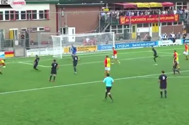 En effet, un joueur d’Apeldoorn, pensionnaire de cinquième division néerlandaise, s’est distingué avec un centre dimariesque en coup du foulard. Cerise sur le gâteau, derrière, ça fait but, grâce au coup de casque de son coéquipier.