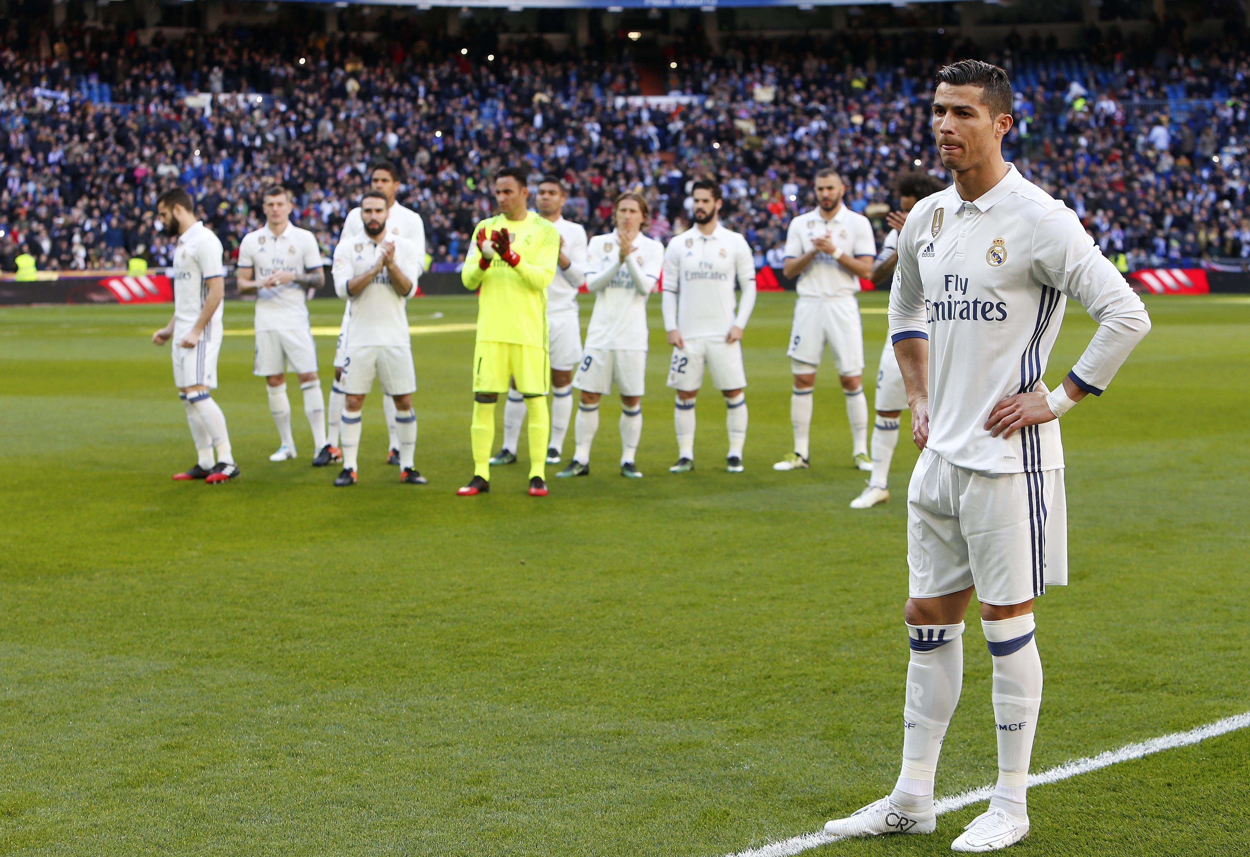 Récompensé de son cinquième Ballon d’or ce jeudi, Cristiano Ronaldo est un homme heureux. Tellement heureux qu’il s’est affiché avec ses précieux trophées avant le coup d’envoi du match entre le Real Madrid et le FC Séville. Il est allé récupérer son dernier Ballon d’or et l’a tendu vers le public du Santiago Bernabéu, sous les applaudissements de ses coéquipiers.