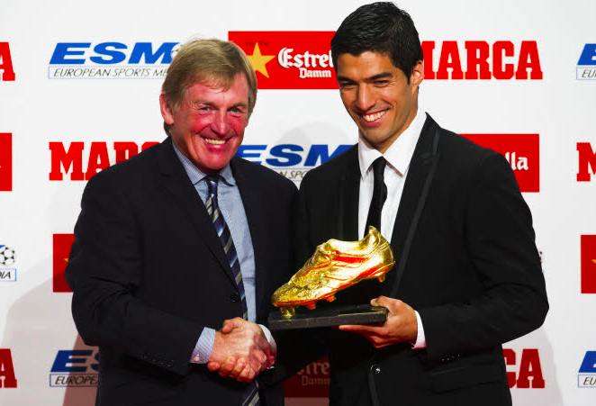 Luis Suárez a reçu hier soir son Soulier d’or des mains de son ancien coach à Liverpool, Kenny Dalglish.