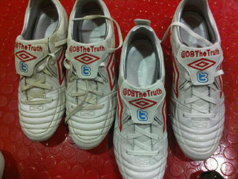 L’Anglais originaire de Londres en est tellement dépendant qu’il a griffé ses nouvelles chaussures au motif de son compte Twitter. Pour preuve, la photo.