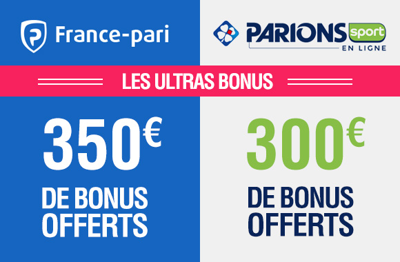 Jusqu'à dimanche seulement, France-Pari et ParionsSport En Ligne vous offrent respectivement des bonus exceptionnels de 350€ et 300€. Vous n'avez donc plus que quelques jours pour en profiter